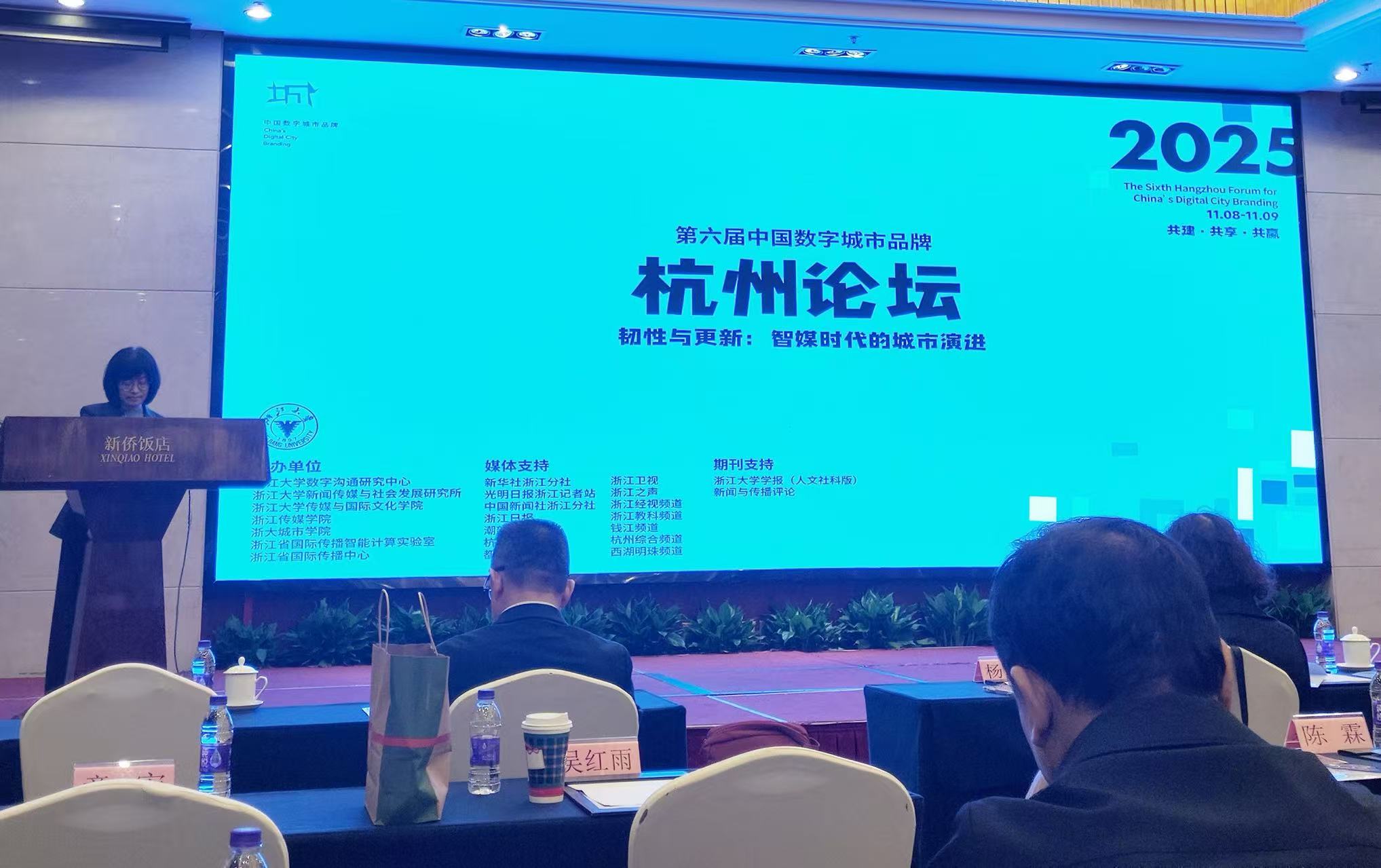 11月9日,以“韧性与更新:智媒时代的城市演进”为主题的第六届中国数字城市品牌杭州论坛举行,论坛由浙江大学、浙江传媒学院等主办,来自多个领域的专家与会。广州城市舆情治理与国际形象传播研究中心刘超教授团队成员潘梦佳、李媛应邀参加论坛并分享案例研究成果。