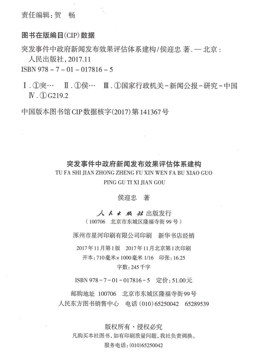 本书将在综合分析目前我国政府新闻发布制度建设现状及问题的基础上,围绕本课题研究主题,采用文献调查、深度访谈、问卷调查、个案研究、指标模型建构与验证等定性分析与定量研究的方法,探究目前我国政府应对突发事件中新闻发布工作的现状与问题,分析影响突发事件中政府新闻发布传播效果的内在因素,以及政府新闻发布效果评估的基本原则,以此建构效果评估指标体系,并结合现实中的应用进行指标检验,为提升我国政府新闻发布工作实施效果,推动政府危机传播管理,提供理论框架与操作性指导。